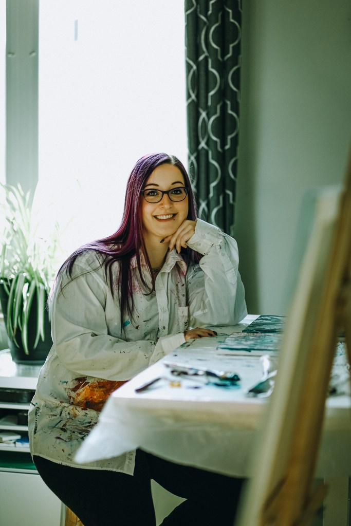Though I have taken many art classes over the years, I am a mostly self-taught painter. My art is about embracing my intuition, expression, and exploring color and technique. I chase my inspiration, whether that means painting something based on a dream (or nightmare, but not for me), a story idea, or even something as simple as a marking.
