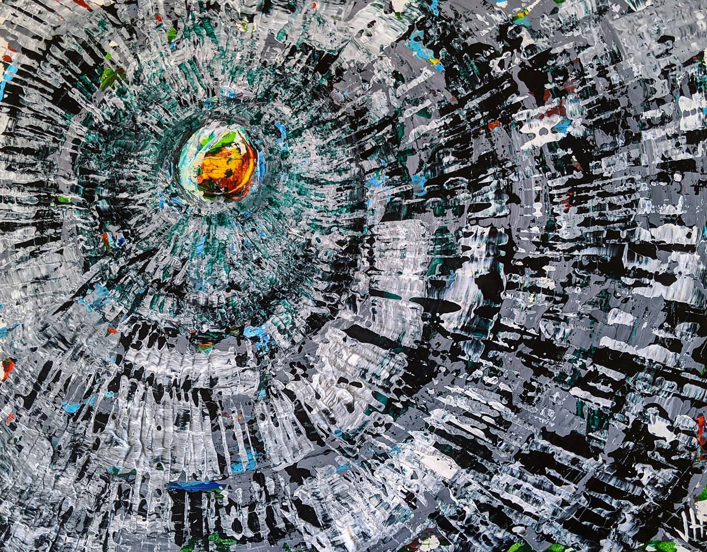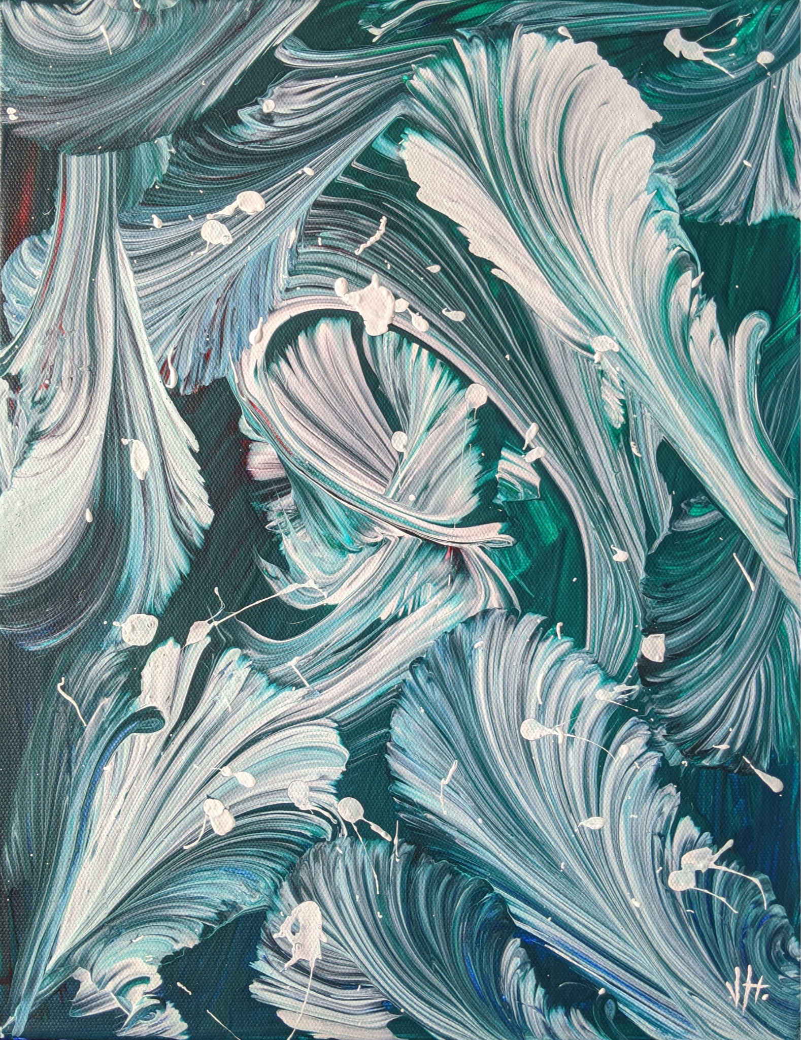 2021Acrylic on canvas, 36″ x 24″Sold I came up with the idea to create an ocean piece in my abstract style after the client sent me their preferred color palette and images of the room where the painting would hang. I thought a beach scene would work perfectly! I used some metallic silver and gold […]